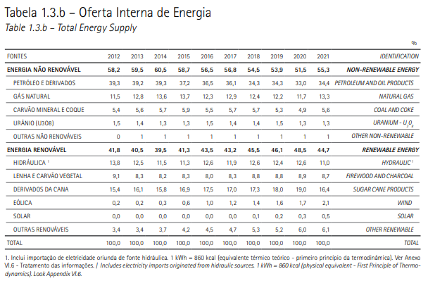 O Brasil não se distancia do uso de petróleo (34,4%) – emitindo em 2021, aproximadamente 10,7 bilhões de toneladas de CO2. No entanto, comparado ao resto do mundo, se destaca na utilização de fontes renováveis. Mas essa nem sempre foi a realidade.