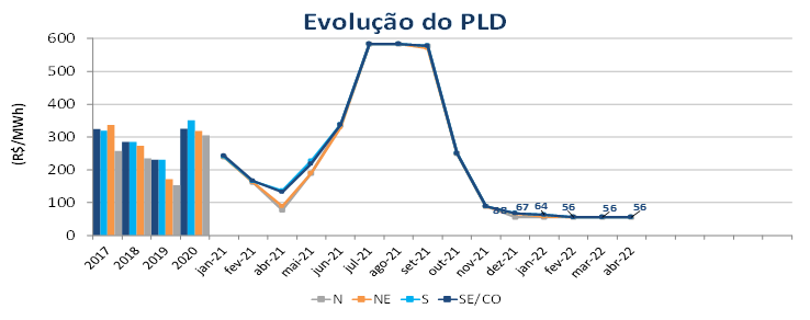 A média diária do Preço de Liquidação das Diferenças (PLD) não apresentou variação em relação ao mês anterior.