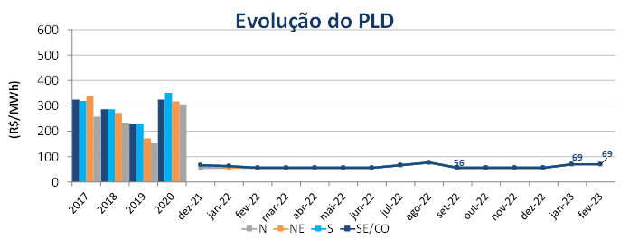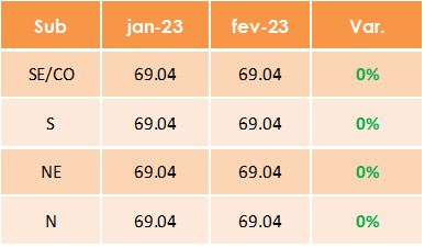 A média mensal do PLD se manteve em R$69,04 para todos os Submercados.