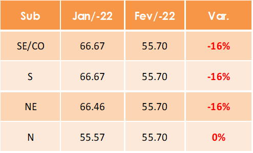 Um dos principais motivos da redução observada foi a melhora nos volumes de chuvas durante o mês de fevereiro e a expectativa de manutenção deste cenário favorável.