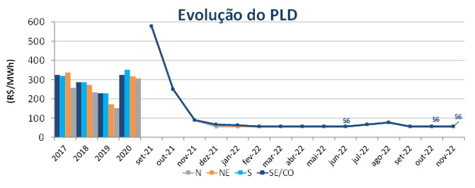 A média diária do Preço de Liquidação das Diferenças (PLD) não apresentou variação em relação ao mês anterior.