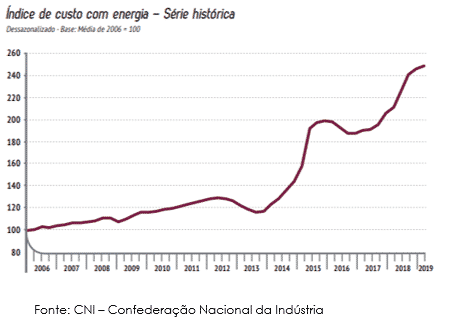 Segundo o relatório “Indicador de Custos Industriais”, elaborado pela CNI (Confederação Nacional da Indústria), o 1º trimestre de 2019 foi o 9º seguido de alta no custo com energia elétrica para a indústria brasileira.