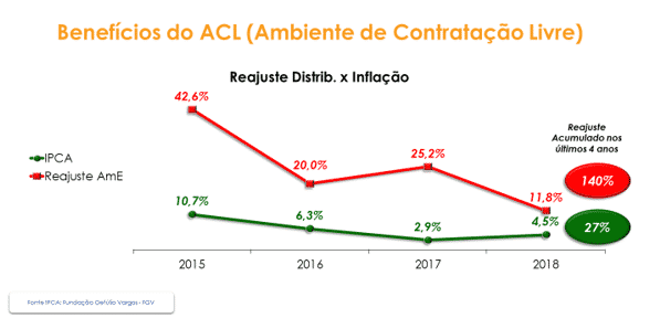 Com base no boletim ABRACEEL de Energia Livre, de junho de 2019, os últimos 12 meses registraram um crescimento de 14% no número de consumidores que migraram para o ACL (Ambiente de Contratação Livre). Atualmente são mais de 6.000 consumidores que já se beneficiam do mercado livre e isso representa 30% de toda energia consumida no país. Se considerarmos apenas o consumo industrial do Brasil, 80% dele já acontece no mercado livre de energia.