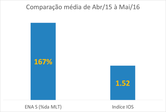 Portanto, nos anos em que temos El Niño, por exemplo, a geração hidrelétrica do Sul tende a ser favorecida e, no Nordeste, desfavorecida no verão. Entre 2015 e 2016 tivemos o último evento de El Niño e esse foi considerado um dos mais intensos já registrados, pois entre Abr/16 e Mai/17 o índice que categoriza esse evento climático, o IOS -Índice de Oscilação Sul, apresentou valores elevados em comparação com o histórico do índice. Nesse mesmo período, a Energia Natural Afluente (ENA), indicador que representa a quantidade de energia elétrica que pode ser gerada a partir da vazão dos rios, do Submercado Sul ficou, em média, 67% acima do normal para o período.